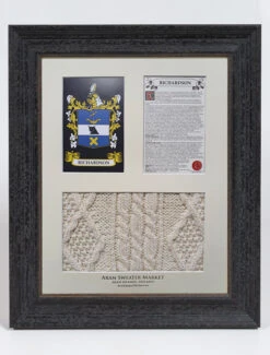 The Richardson Clan Aran & History Display is a wonderful item of Richardson heritage which can be proudly displayed in your home or place of work to demonstrate the pride your have in your Richardson name.