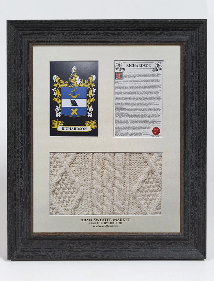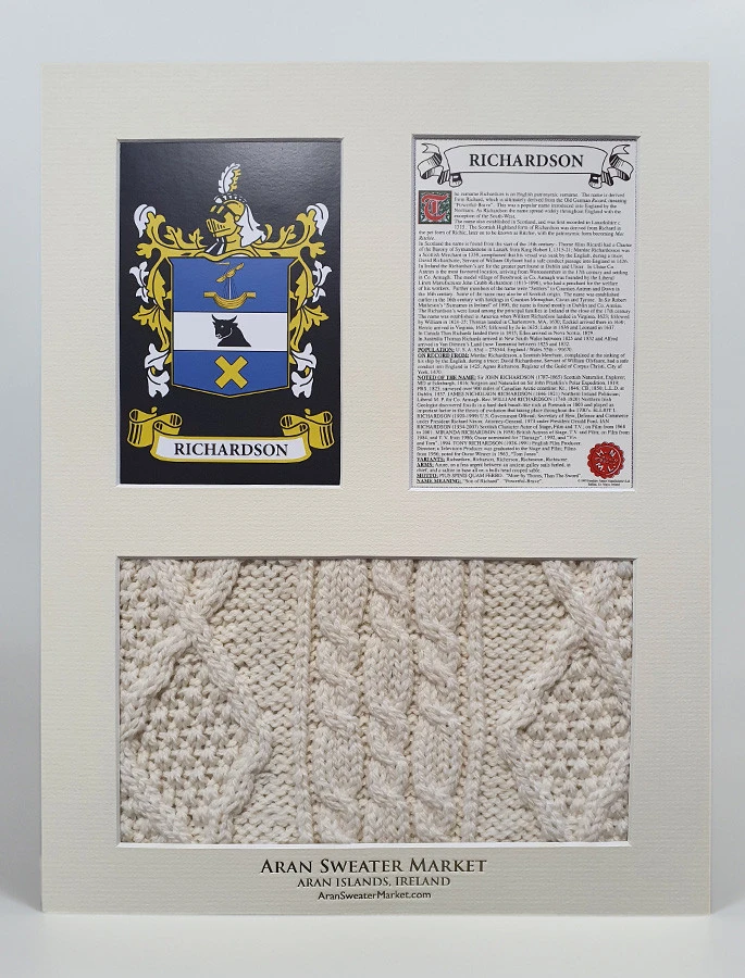 - Lovingly handcrafted & using the finest 100% soft new wool, this Richardson Clan Aran & History Display has been created following the historic family pattern of your clan.
