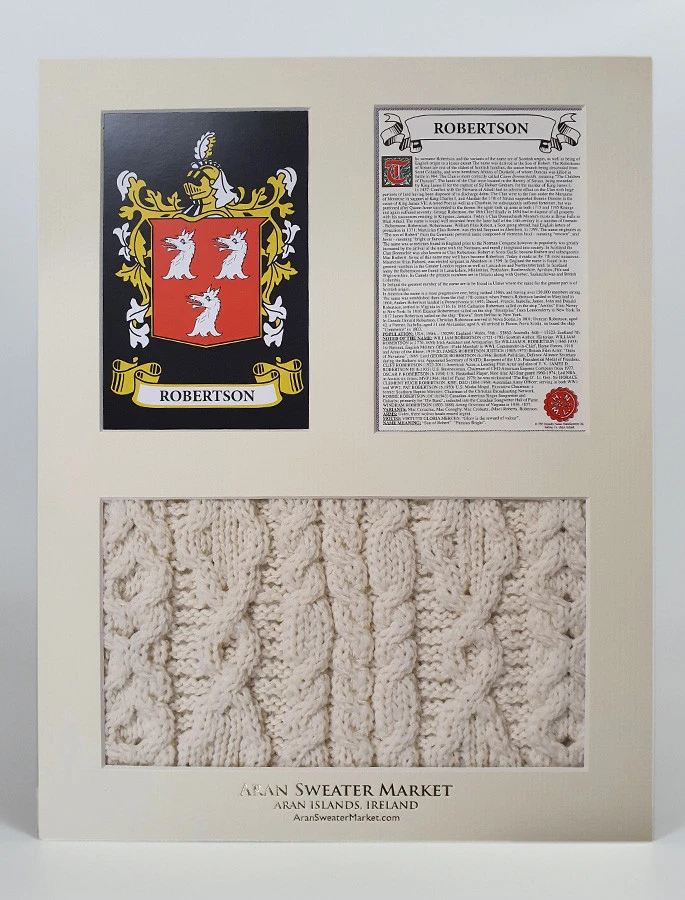 - Lovingly handcrafted & using the finest 100% soft new wool, this Robertson Clan Aran & History Display has been created following the historic family pattern of your clan.