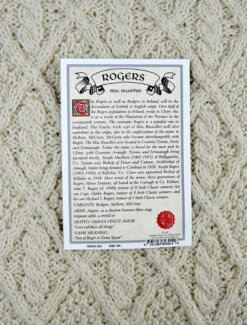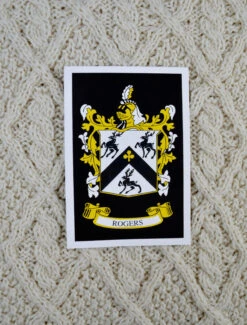 The Rogers Clan Aran Throw is a precious gift for any home wherein Rogers heritage proudly resides & will be cherished by families of the Rogers name for generations to come. Lovingly crafted from the finest 100% soft new wool, this Aran throw (measuring 64″ X 40″) has been created following the unique Rogers Clan Aran pattern.