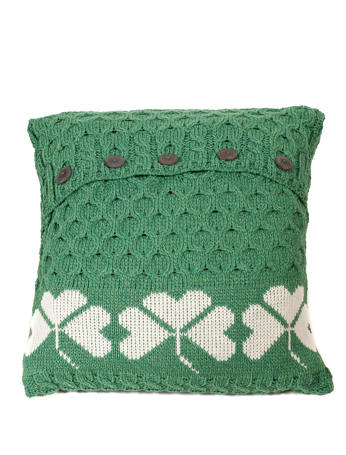- Traditional Shamrock Cushion Cover featuring Aran Honeycomb patterns