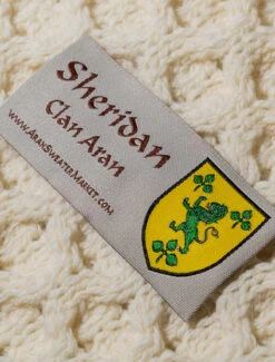 The Sheridan Clan Aran Throw is a precious gift for any home wherein Sheridan heritage proudly resides & will be cherished by families of the Sheridan name for generations to come. Lovingly crafted from the finest 100% soft new wool, this Aran throw (measuring 64″ X 40″) has been created following the unique Sheridan Clan Aran pattern.