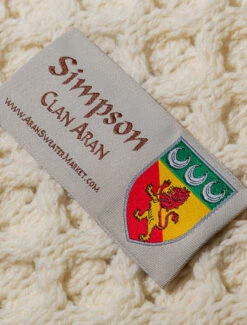 The Simpson Clan Aran Poncho is a precious gift for anyone of Simpson Clan heritage. Lovingly crafted from the finest 100% soft new wool, this Aran Poncho has been created following the unique Simpson Clan Aran pattern.