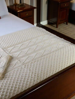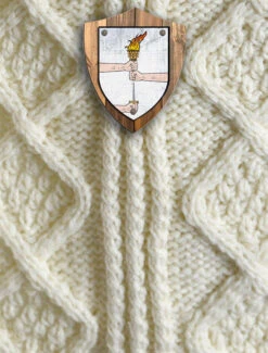 This beautiful Smith Clan Aran Throw (measuring 64″ by 40″) has been produced in the traditional báinín (pronounced ‘baw neen’) colour, the natural white of the wool. It comes to you complete with a clan history and crest.