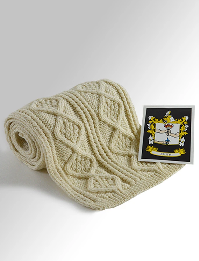The Smith Clan Aran Scarf is a wonderful item of Smith heritage which will be cherished by the wearer for generations to come. Lovingly crafted from the finest 100% soft new wool, this Aran wool scarf has been created following the unique Smith Clan Aran pattern.
