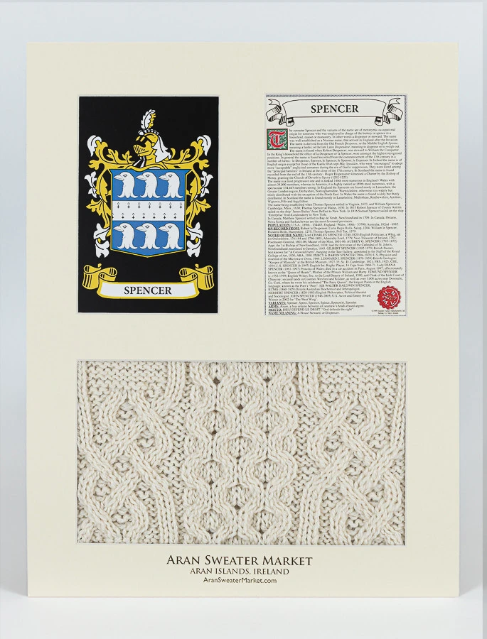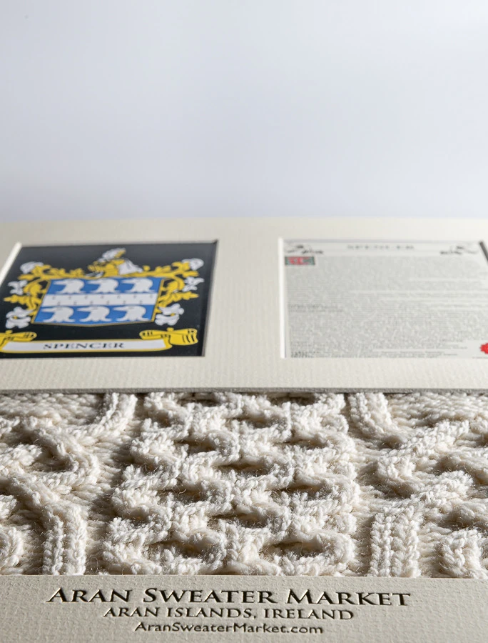 - Lovingly handcrafted & using the finest 100% soft new wool, this Spencer Clan Aran & History Display has been created following the historic family pattern of your clan.