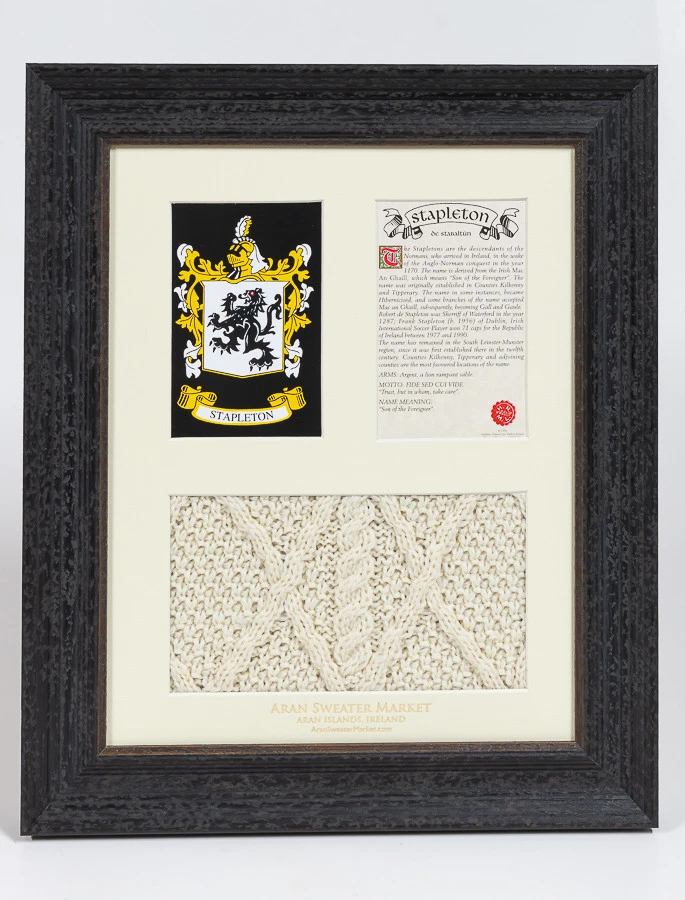 The Stapleton Clan Aran & History Display is a wonderful item of Stapleton heritage which can be proudly displayed in your home or place of work to demonstrate the pride your have in your Stapleton name.