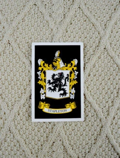 The Stapleton Clan Aran Throw is a precious gift for any home wherein Stapleton heritage proudly resides & will be cherished by families of the Stapleton name for generations to come. Lovingly crafted from the finest 100% soft new wool, this Aran throw (measuring 64″ X 40″) has been created following the unique Stapleton Clan Aran pattern.