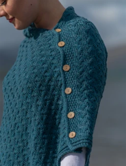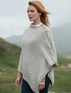 Our Luxury Trellis Stitch Poncho is a modern take on classic Irish design. This garment is the ideal Summer companion as it is comfortable, practical and extremely lightweight.