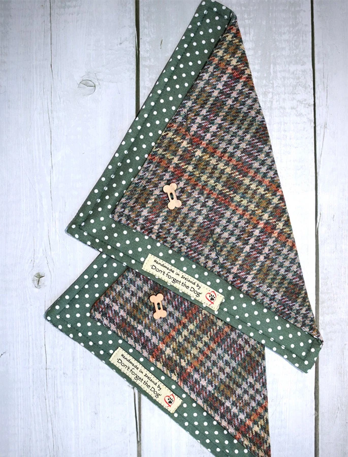Tweed Wool Doggy Neckerchief Bandana – Green & Amber Plaid