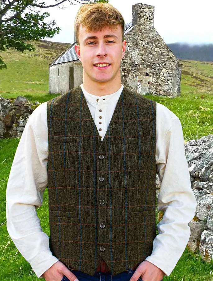 Tweed Herringbone Overcheck Waistcoat – Olive