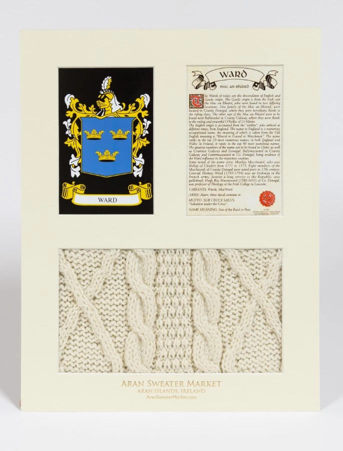 The Ward Clan Aran & History Display is a wonderful item of Ward heritage which can be proudly displayed in your home or place of work to demonstrate the pride your have in your name.