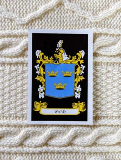The Ward Clan Aran Throw is a precious gift for any home wherein Ward heritage proudly resides & will be cherished by families of the Ward name for generations to come. Lovingly crafted from the finest 100% soft new wool, this Aran throw (measuring 64″ X 40″) has been created following the unique Ward Clan Aran pattern.