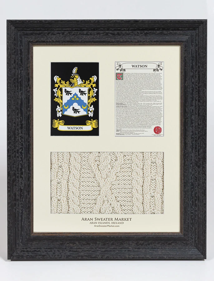 The Watson Clan Aran & History Display is a wonderful item of Watson which can be proudly displayed in your home or place of work to demonstrate the pride your have in your Watson name.