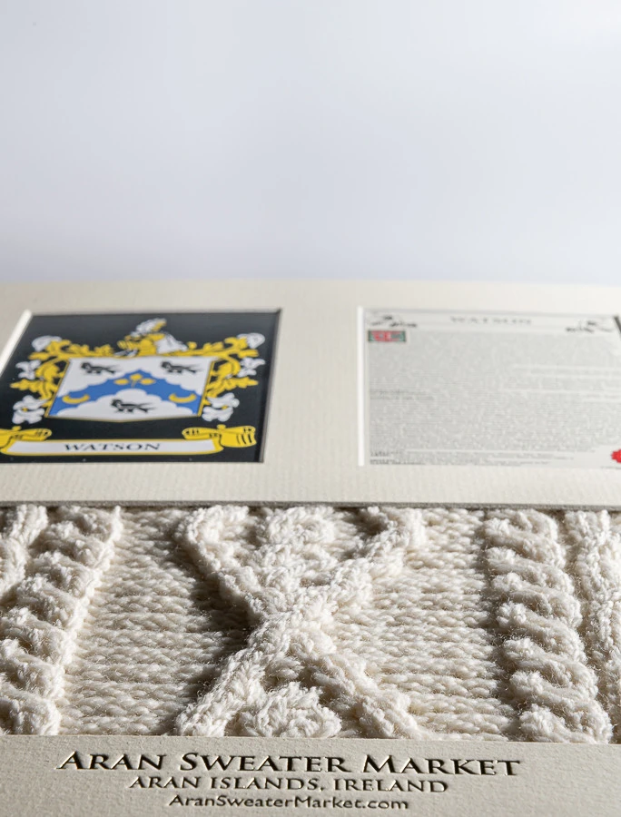 - Lovingly handcrafted & using the finest 100% soft new wool, this Watson Clan Aran & History Display has been created following the historic family pattern of your clan.