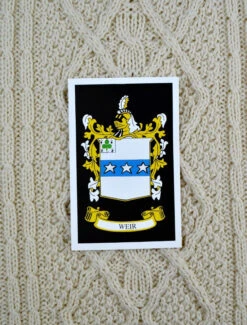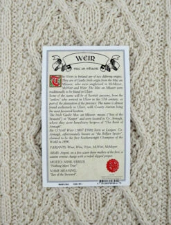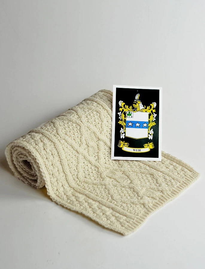 The Weir Clan Aran Scarf is a wonderful item of Weir heritage which will be cherished by the wearer for generations to come. Lovingly crafted from the finest 100% soft new wool, this Aran wool scarf has been created following the unique Weir Clan Aran pattern.