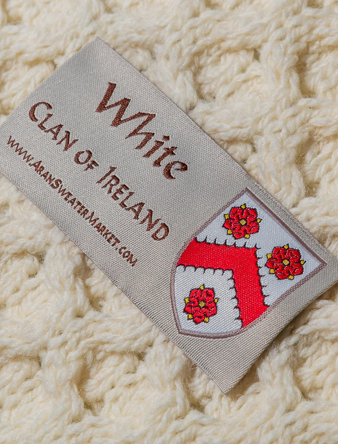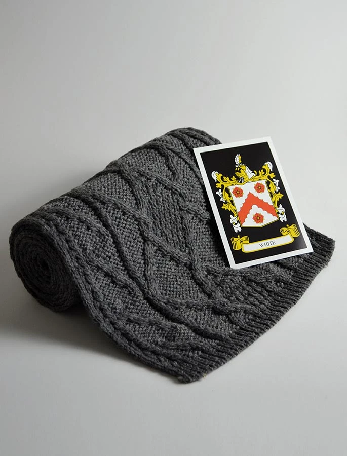 The White Clan Aran Scarf is a wonderful item of White heritage which will be cherished by the wearer for generations to come. Lovingly crafted from the finest 100% soft new wool, this Aran wool scarf has been created following the unique White Clan Aran pattern