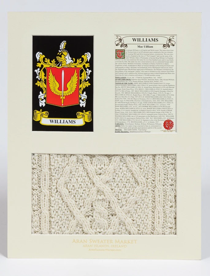 - Lovingly handcrafted & using the finest 100% soft new wool, this Williams Clan Aran & History Display has been created following the historic family pattern of your clan.