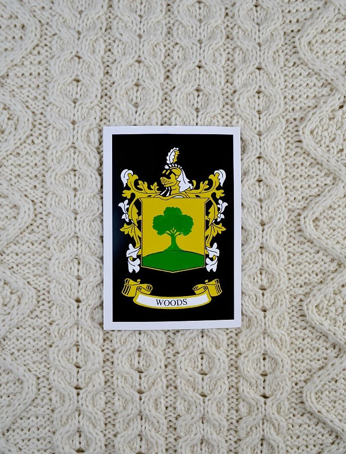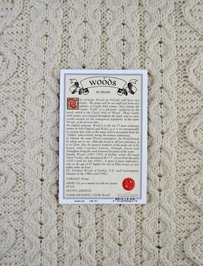 The Woods Clan Aran Throw is a precious gift for any home wherein Woods heritage proudly resides & will be cherished by families of the Woods name for generations to come. Lovingly crafted from the finest 100% soft new wool, this Aran throw (measuring 64″ X 40″) has been created following the unique Woods Clan Aran pattern.