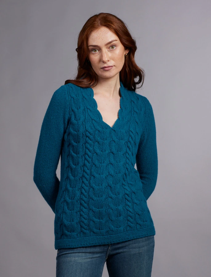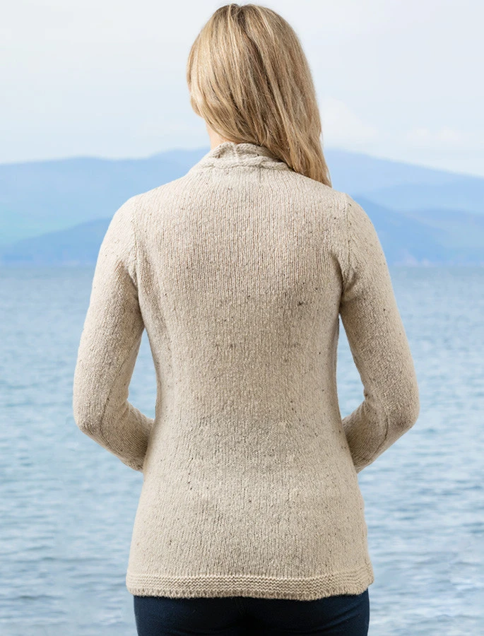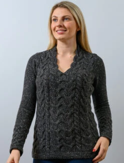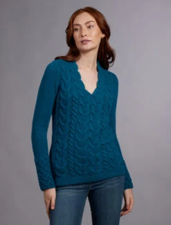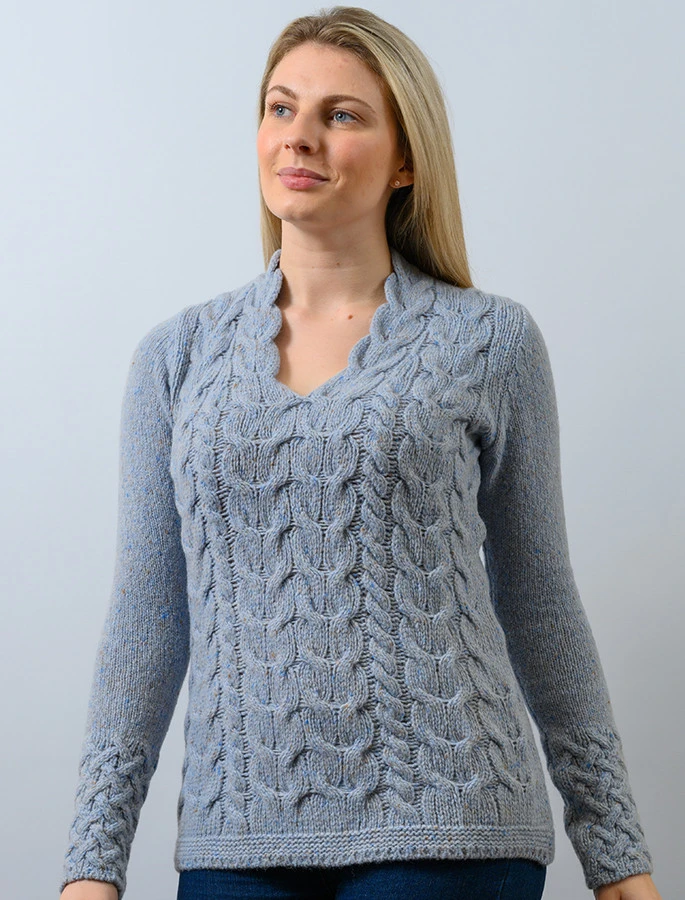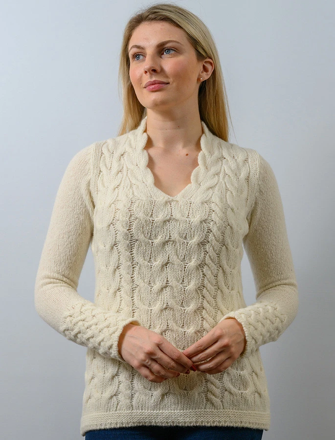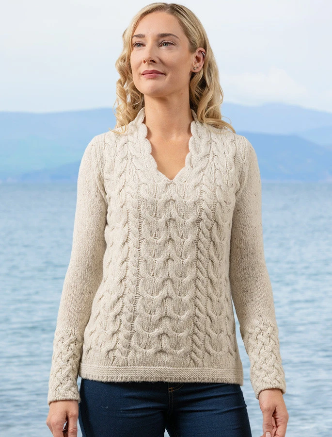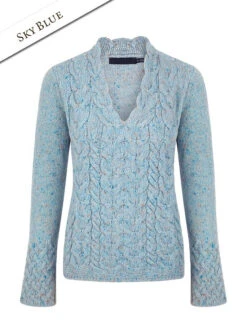 This cosy and stylish sweater is ideal for casual and formal occasions; a little bit of styling is all you need to make it a multitasker! Key features include a unique plaited style collar using the braided stitch, thought to represent the interweaving strands of life.