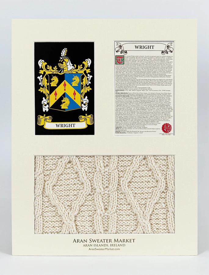 - Lovingly handcrafted & using the finest 100% soft new wool, this Wright Clan Aran & History Display has been created following the historic family pattern of your clan.